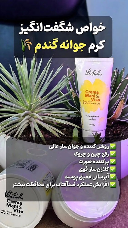 راسته✅یا دروغ❌؟! کرم جوانه گندم حاوی : • روغن جوانه گندم ( ضد چین و چروک ) 🌾 • روغن آواکادو ( ابرسان و مرطوب کننده ) 🥑 • روغن بادام شیرین ( ضدلک و روشن کننده )🌰 • ویتامین E ( تغذیه عمقی پوست )💊 • عصاره آلوئهورا ( ترمیم کننده و ضدالتهاب ) 🌿 ✨ خواص کرم جوانه گندم 🌾💛 ✔️ آبرسان قوی ✔️ رفع چین و چروک ✔️ رفع تیرگی و لکها ✔️ لیفت و سفت شدن پوست ✔️ پرشدن و شادابی صورت ✔️ شفافیت و جوانسازی پوست ✔️ بستن منافذ باز —-